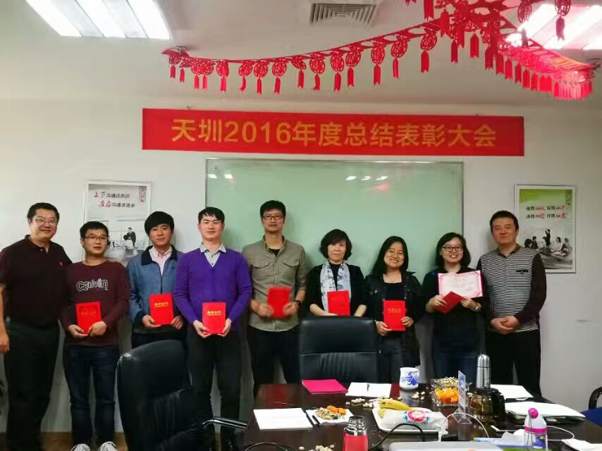 1月6日上午,各事業部自行組織分組總結;下午公司全體人員在公司會議室參加了《天圳2016年度總結表彰大會》。下午大會的會議議程主要有三個內容,首先公司總工趙昊然同志做了《2016年度公司工程情況總結》,接下來公司常務副總經理巢海同志做了《2016年度工作報告》,報告中肯定了公司在2016年取得的成績:公司2015年通過了深圳市高新技術企業認定,2016年成為國家級高新技術企業;公司推出了自由品牌的能源公輔與設備綜合管控系統平臺產品;成為西門子410smart系統與產品的華南區獨家總代理;成立了智能制造與柔性自動化產線事業部等等,取得了可喜的成績。在總結講話的最后環節,公司總經理楊俊博士肯定了全體員工的共同努力,實踐證明公司事業部制的運營管理模式、考核模式,培養行業領域專家,行業領域技術骨干,為公司的可持續發展打下堅實基礎。楊博指出公司在2017年,將會在公司制度、計劃、目標、考核與執行上更加嚴格重視,在骨干培養與引進等隊伍建設、工程售前技術積累、設計實施管理等方面大力完善。會議最后的環節是表彰先進,會上表彰了在2016年為公司發展做出突出貢獻的7名員工,獲獎員工在各自的崗位上努力工作,當之無愧是天圳人的楷模。
